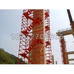 墩柱安全爬梯专门用于桥梁墩柱施工的垂直通行系统人行通道。墩柱安全爬梯构件系列标准化,便于运输和管理,无零散易丢失构件,损耗低,后期投入少。